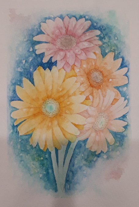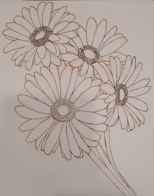 0 1 ガーベラボールペン終わってました 真ん中難しすぎる 水彩紙ぼこぼこしてるから水彩の方の下描きうまく描けぬ #お花 #イラスト 23/03/22 06:43