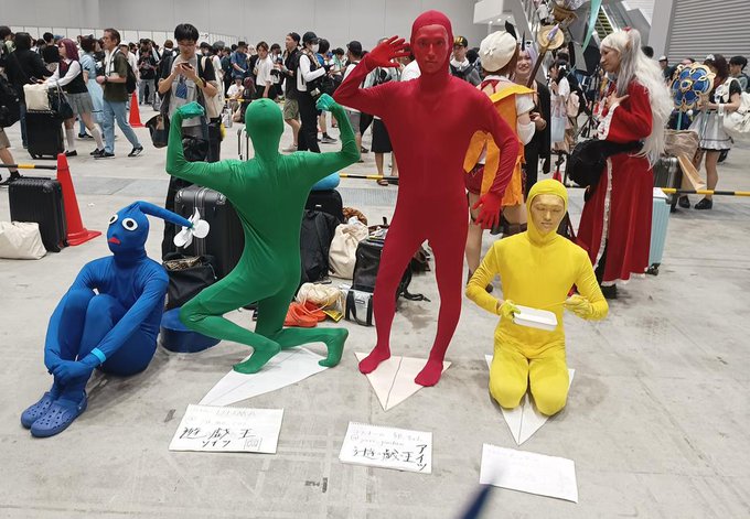コミケ会場に、アイツ コイツ(?)ソイツ ドイツ がいました アイツ(@yoro_ginchan)さん ソイツ(@yu_ma_cos_)さん ドイツ(@izayoimottyi)さん #C102コスプレ #C102