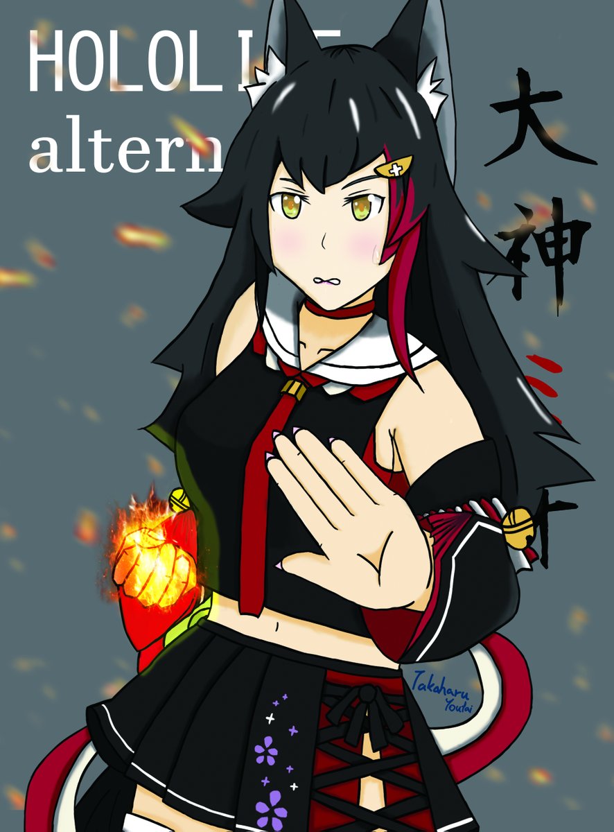 1 10 顏アレンジした 大神ミオALT お嬢に向かって苦戦するミオ オルタナティブの新ティザーPVに參考し 描き下ろしの作品です #hololiveALT #みおーん絵 21/05/26 11:57
