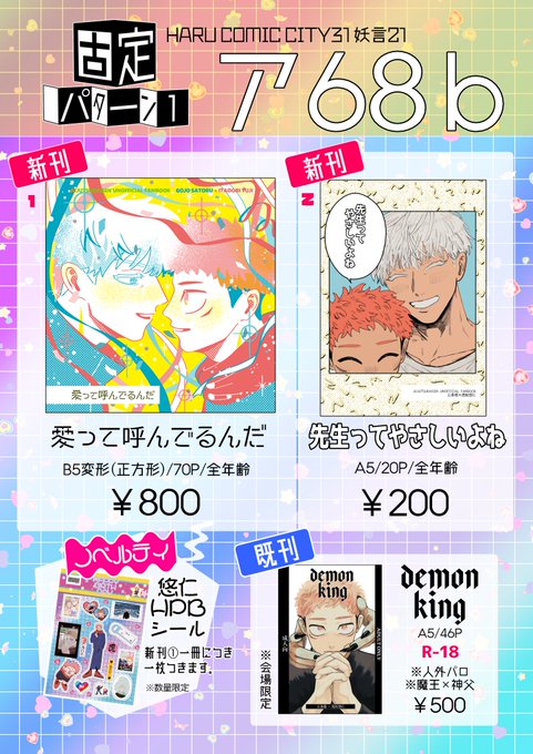 🌈6月の新刊 呪専パロ進捗 poipiku.com/993758/8782238… 🌈メイドの五悠 poipiku.com/993758/8782241… 25日くらいまで置いてあります!イベントありがとうございました‼️ #520はぴごゆアフター