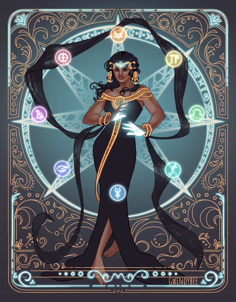 Oops, #PortfolioDay was yesterday! I'm Gwen, a freelance fantasy illustrator, and project lead + art director for Uncaged Goddesses! Here are some illustrations I did for the book -- turns out, Art Nouveau-style stuff is super fun? Who knew 🤣