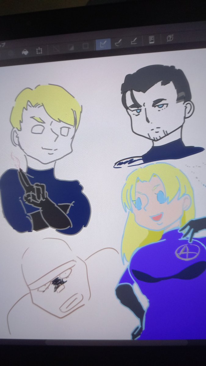 #イラスト #マーベル とりあえずうちのアースでのF4ですね…