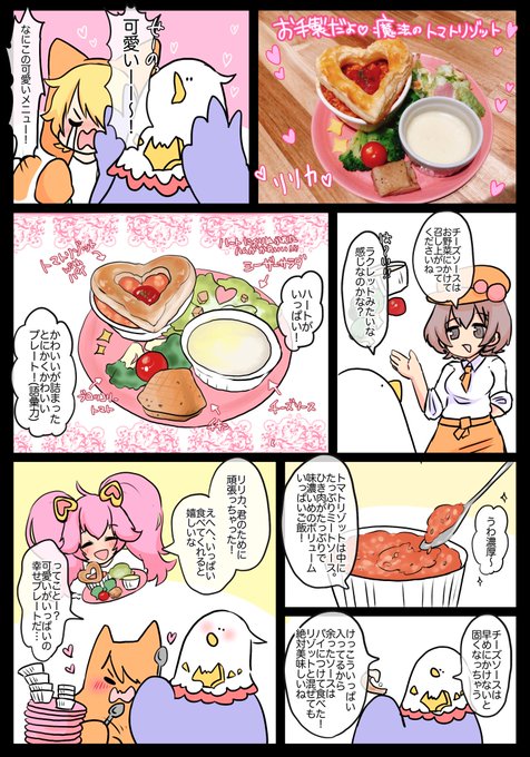 27 292 リリカちゃんの お手製だよ♡魔法のトマトリゾット リリカちゃんのメニューってなんか全部ひたすらにかわいいよね、、 ルルカちゃんのシチューポットパイを追いかけるように、パイが乗ってるメニューで尊い コンパスカフェ 去年の年末頃のメニュー 23/03/06 00:38