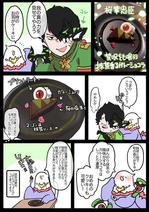 桜華忠臣 禁呪をも喰らう 抹茶香るガトーショコラ 耳が食えるってコト ちょ、こ れい⤴と の忠臣はがとぉしょこらちゃんと言えるんでしょうか🍫 コンパスカフェ 去年あったメニュー!
