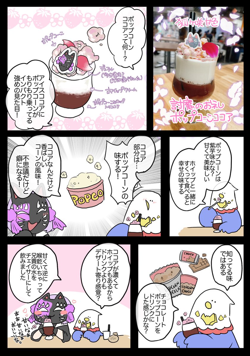 【コンパスカフェ 5月メニュー】 狐ヶ咲甘色 討魔のお礼ポップコーンココア 飲んできた日記! 甘党の人にオススメ、飲むというより食べるが強めのドリンク かなり甘くて、チェイサーとして兄貴の水飲んでました 5月末までのマンスリーメニューです☕️
