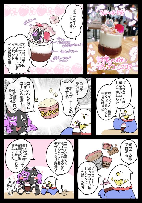 64 453 【コンパスカフェ 5月メニュー】 狐ヶ咲甘色 討魔のお礼ポップコーンココア 飲んできた日記! 甘党の人にオススメ、飲むというより食べるが強めのドリンク かなり甘くて、チェイサーとして兄貴の水飲んでました 5月末までのマンスリーメニューです☕️ 23/05/15 19:54