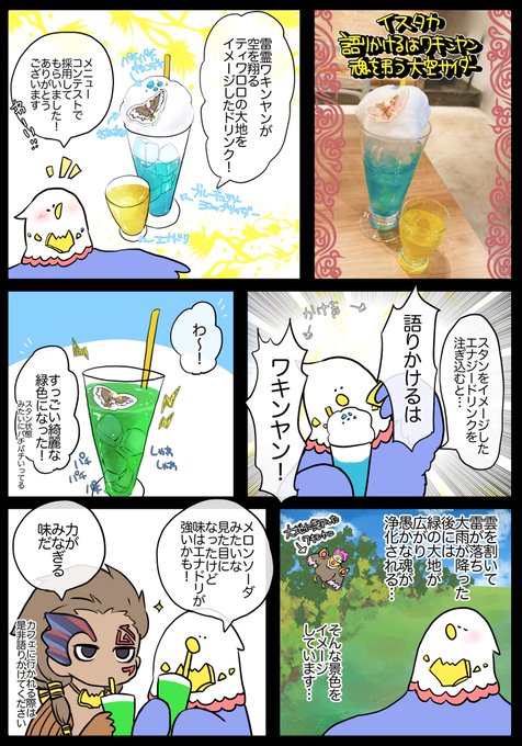 コンパスカフェ6月のメニューにコンテストの採用メニュー出ます〜☺️✨ イスタカのドリンク! カードじゃないワキンヤンのモナカ激アツすぎるありがとうございます😭 是非語りかけてください〜〜!!