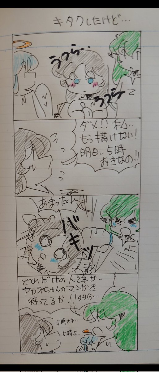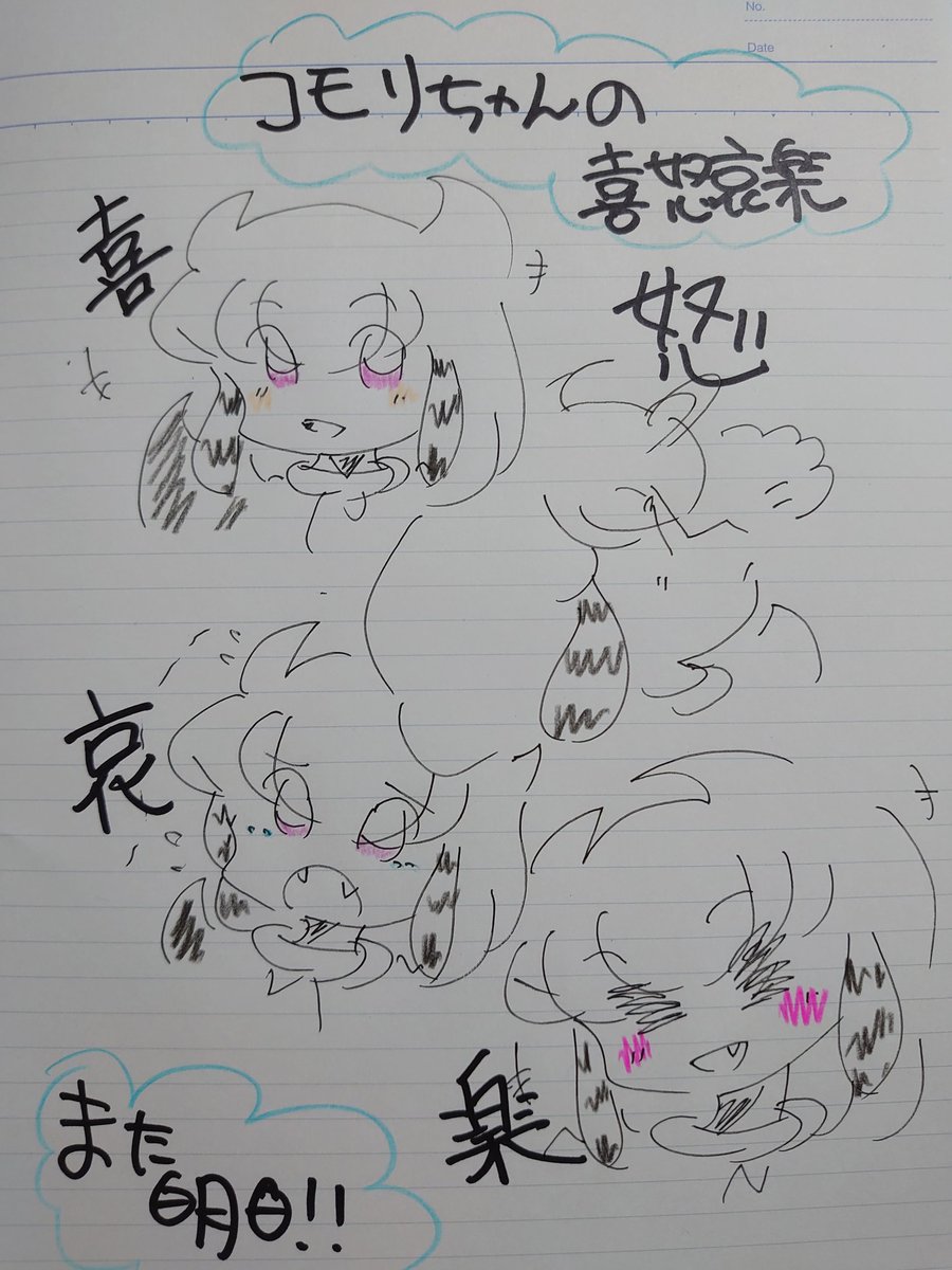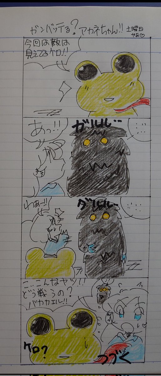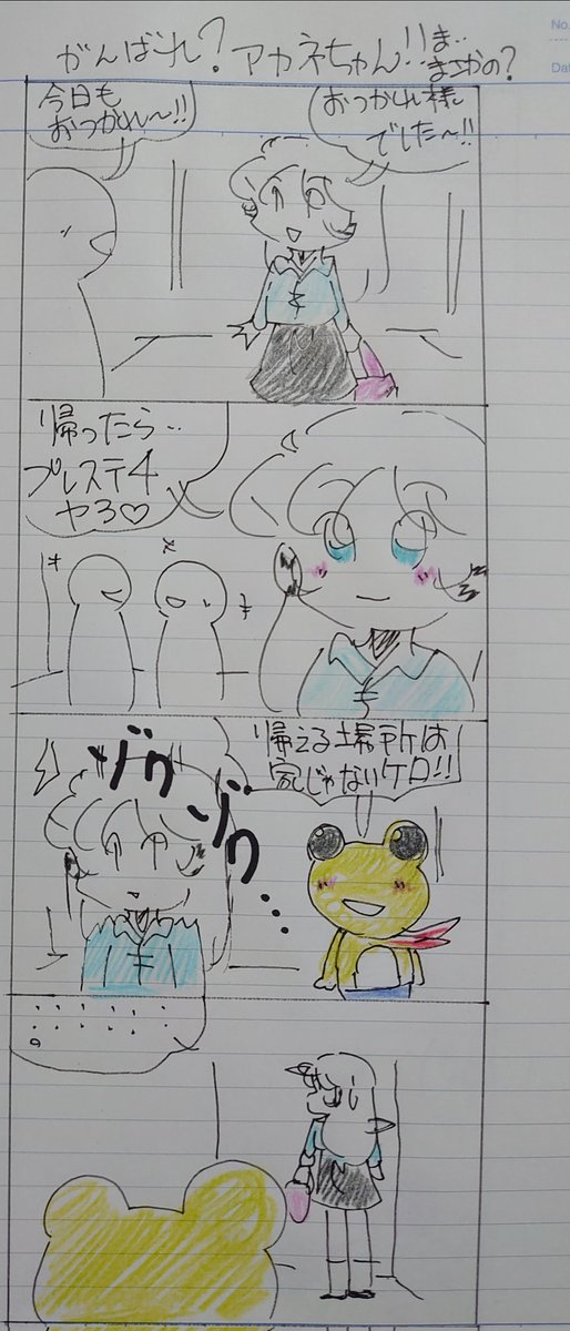 🍀今週もお疲れ様でした🍀 (*゚∀゚💦あっ!! 日付けが変わっちゃったw💦 久々に漫画を描いて🎶✨ ゆっくりと過ごします🎶✨✨ 🍀頑張ってる?アカネちゃん 🍀コモリちゃんの喜怒哀楽 #オリジナル漫画