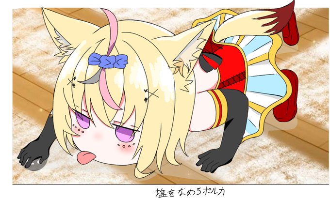 すこんぶちゃんのほっぺを揉む白上 #絵フブキ