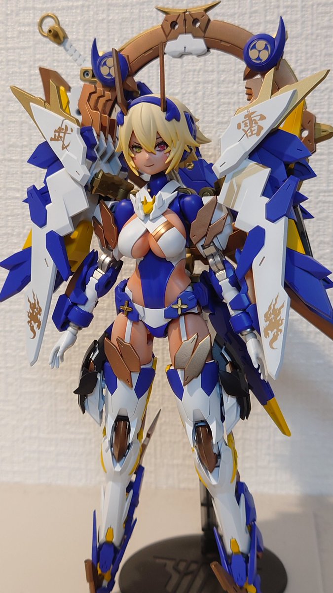 スサノヲ完成。 美人でスタイル良くて武装モードも格好良くて、素晴らしいキットでした。 思い切ったカラーチェンジしてみたけども、綺麗に纏まって良かった。 #メガミデバイス