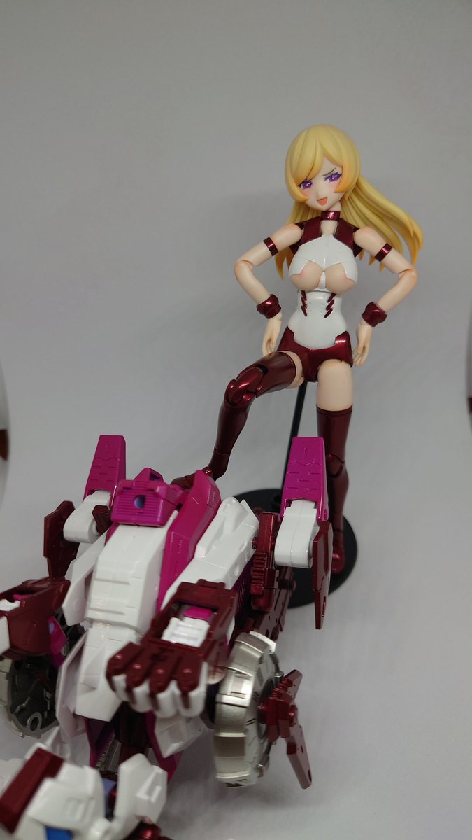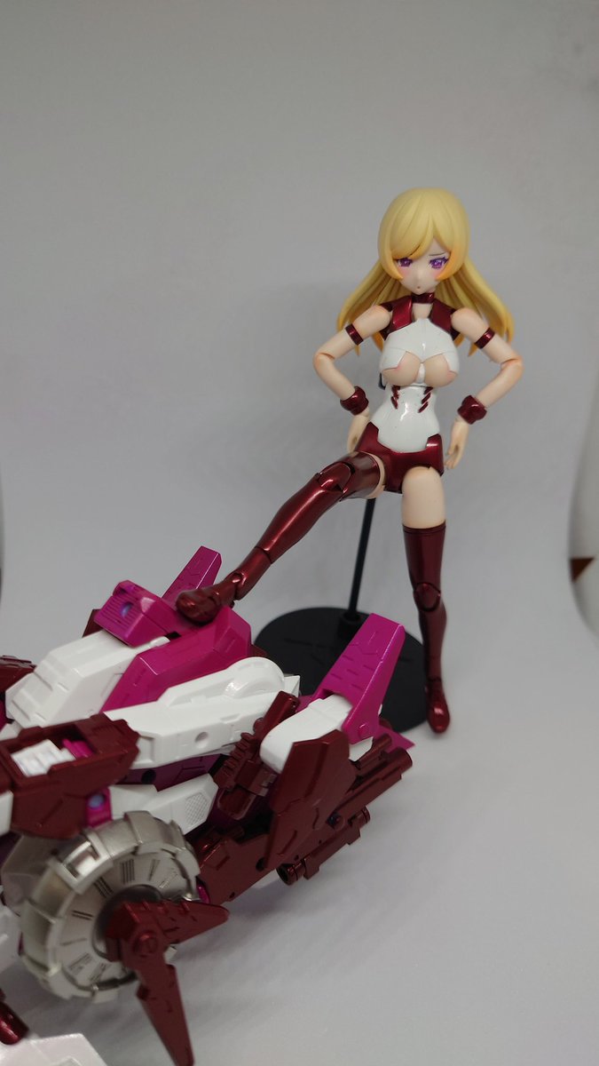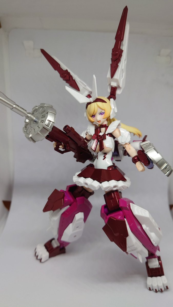 #メガミデバイス アリス完成。今回はカラーチェンジのみ。 接続部やらの塗装剥げてしまうからあんま組み換えできないけど、ワイルドモードの迫力は中々。 赤ずきんに引き続き表情が可愛いので、遊び甲斐のあるキットですね。