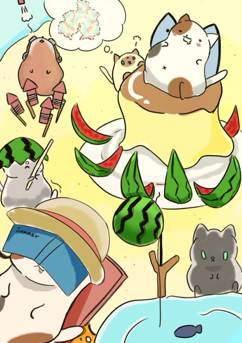 #CatsandSoupSummerArt 会員番号 lXvswpyE8UKZW_Eb1TDSmQ 働く猫達の夏休み😎🌴 #イラスト #illustration #猫 いつも癒されております…!!☺️