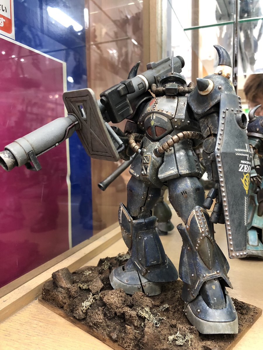 #ガンプラ #ガンプラはどんな自由な発想で作ってもいいんだ #ドワッジ #ガンプラの画像貼るとRTされると聞いて MGドワッジをイオン南松本店に飾らせていただいてきました(^^) こういうお披露目の場があるのがとても嬉しいですが、置いて来たらちょっと寂しくて写真眺めてる…って恋心か!!
