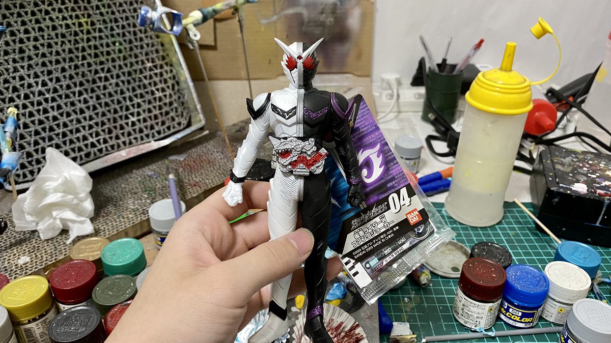 ソフビ改造でファングトリガー出来ました!動画と一緒にお披露目したかったけどまだ動画出来てないし自慢も早くしたいので見せます!! カッコいいでしょ!! #仮面ライダーw #ライダーソフビ改造 #造って遊ぼ