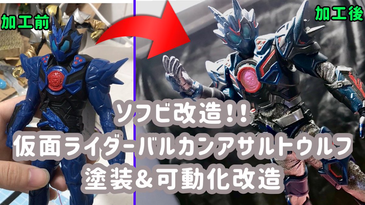 完成しました!めっちゃくちゃカッコいいです!自画自賛です!作りがいありました! youtu.be/7VOddZP7DUs ソフビ改造!仮面ライダーバルカンアサルトウルフ塗装&可動化改造!【ぎやん】 #仮面ライダーバルカン #アサルトウルフ #ニチアサフィギュア改造部 #造って遊ぼ