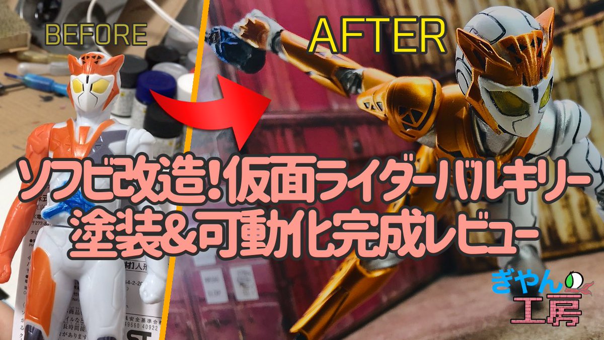 ついに完成しました(^O^)時間が結構掛かりましたがいい感じに仕上がって満足です! ソフビ改造!仮面ライダーバルキリー 塗装&可動化改造完成レビュー!【ぎやん】 youtu.be/K5lpaCI8kJc #ソフビ改造 #造って遊ぼ #ニチアサフィギュア改造部 #仮面ライダー