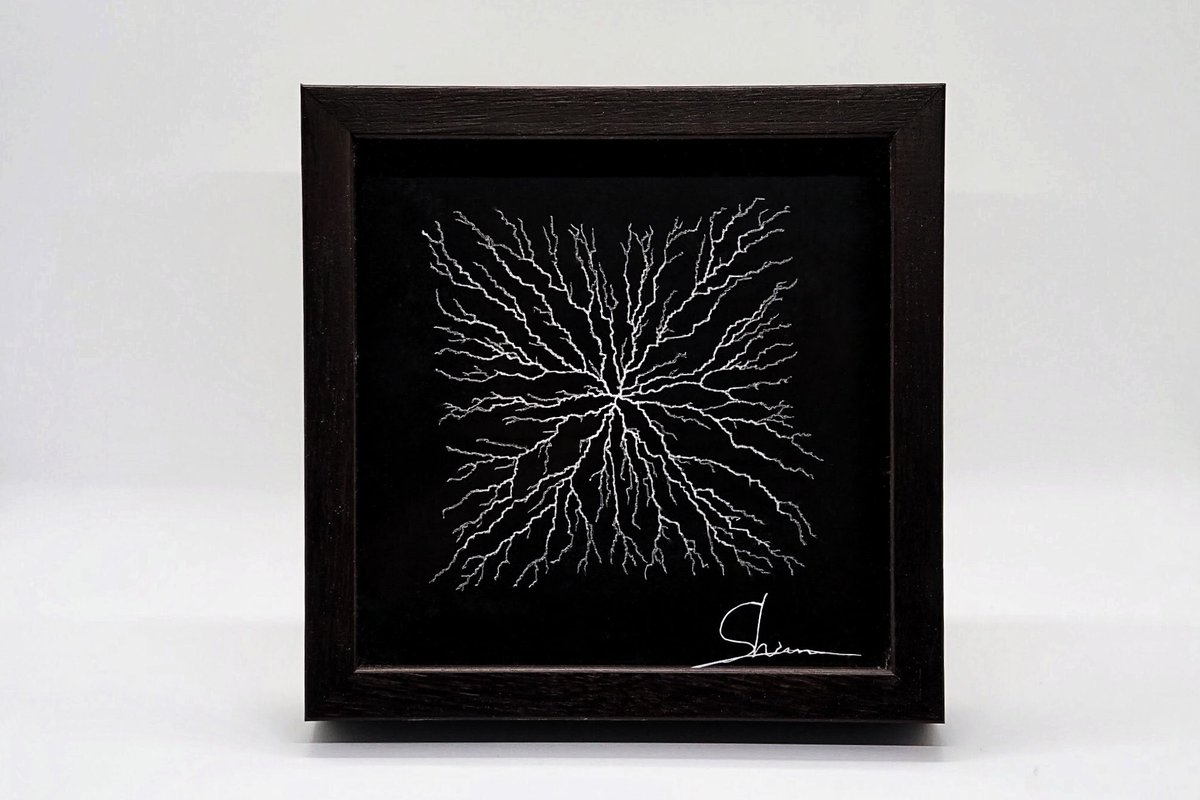 雷で以前作った作品を思い出しました。 リヒテンベルク図形と言われる模様です。 #切り絵 #雷