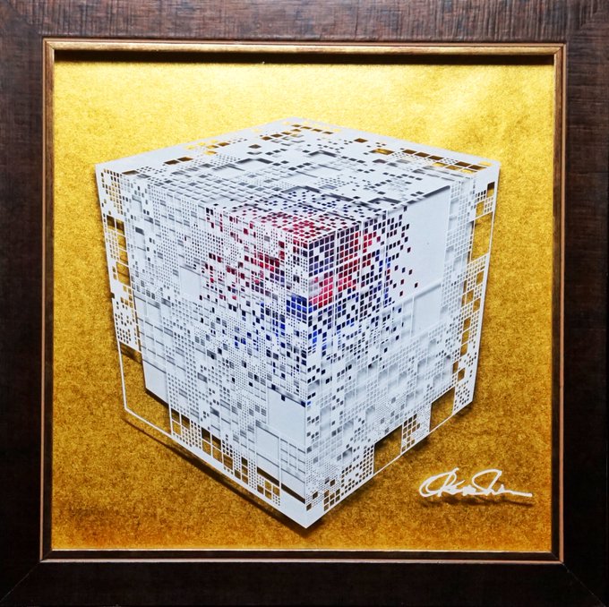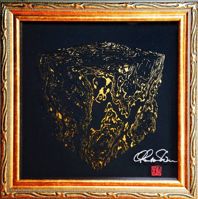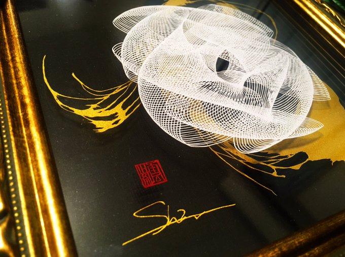 25 143 とんでもない切り絵作品できました。 筆のかすれもサインも落款も図形も全部手作業で切った切り絵です。 #切り絵 #数学アート #書道 23/06/21 00:39