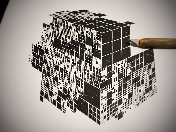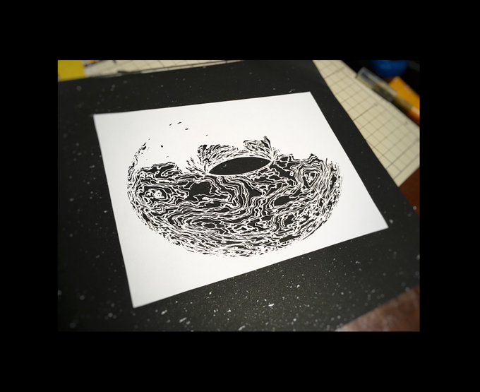 切り絵「Quake」 10000個ぐらいの穴を開けました。 #切り絵 twitter.com/i/web/status/1…