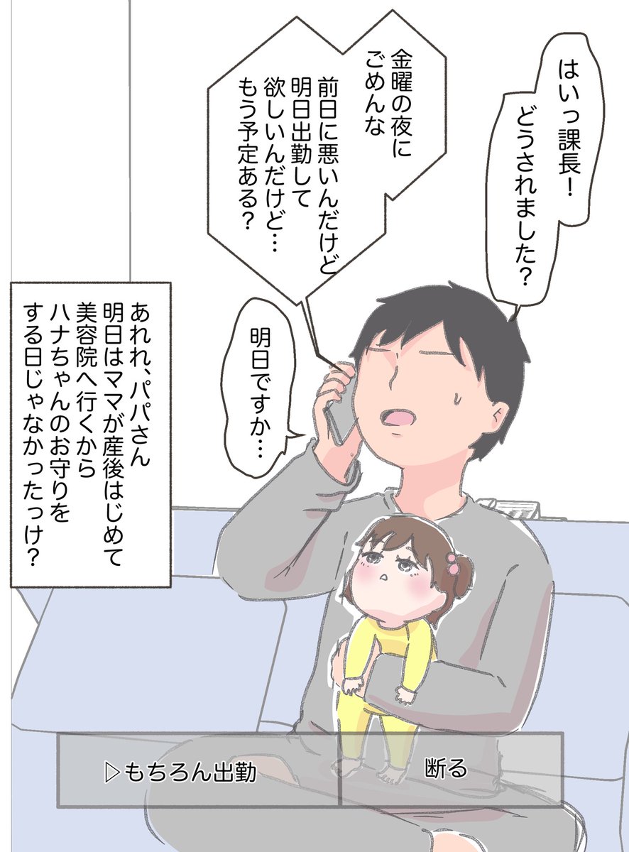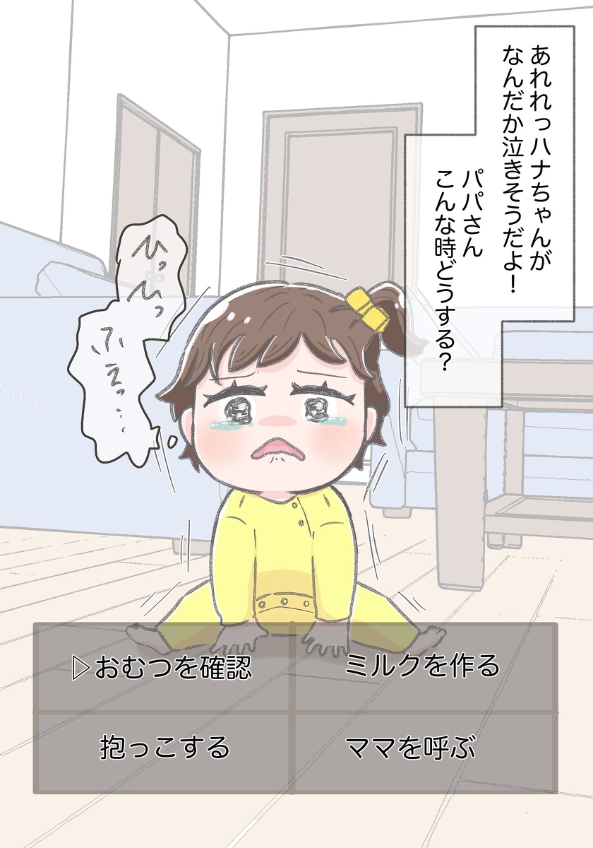 新米パパのハナちゃん育成計画! パパはハナちゃんを立派に育てられるかな? 下のアンケートの結果に沿って話が進んでいきます↓↓↓ RTしてくれると嬉しいよ! #ハナちゃん育児 #漫画が読めるハッシュタグ