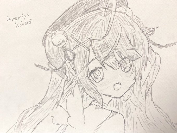 横向きで天宮こころ描いた〜!! ん〜…天使っ!!!! #絵こころ