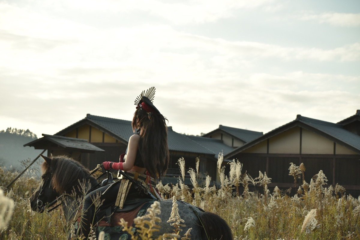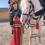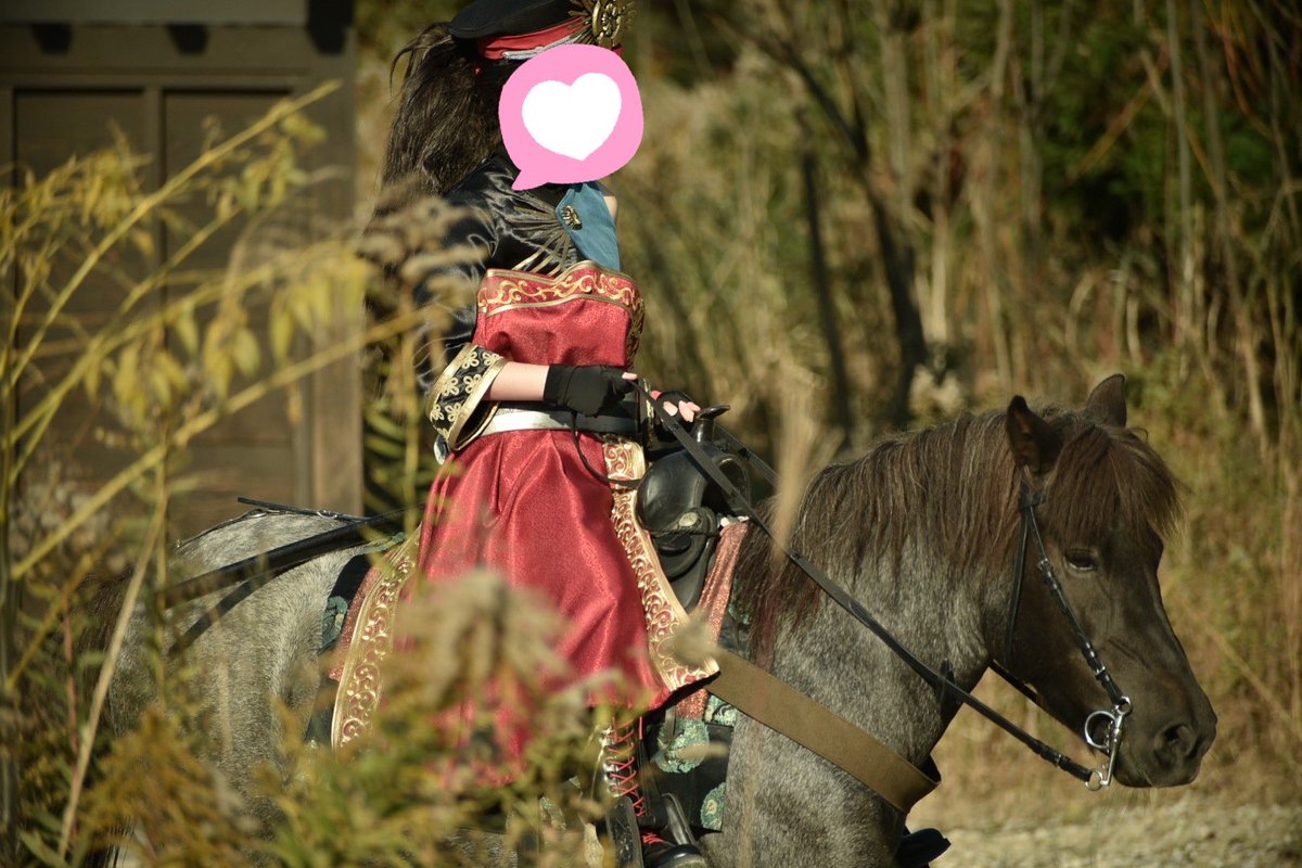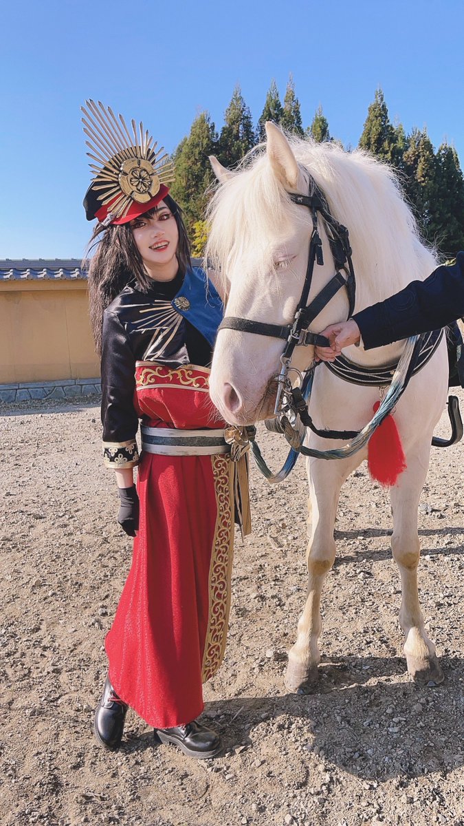 改めて今日は宝田さんに撮影してもらってお馬さんに乗せていただきました!! お馬さんにめちゃくちゃ翻弄されて3回ぐらい落ちそうになったけどめちゃくちゃ最高に楽しかったです🥰💗🐴 宝田さんも天才photo爆裂量産してくれて大満足でした💮💯 #コスプレ乗馬会in彦根オープンセット2022