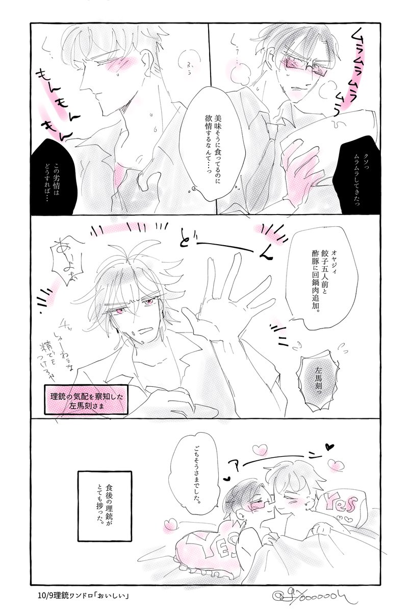 14 136 美味しそうに食べてるのにムラムラする二人。 サマトキサマもいます。 #理銃ワンドロ 「おいしい」+30分 21/10/09 23:32