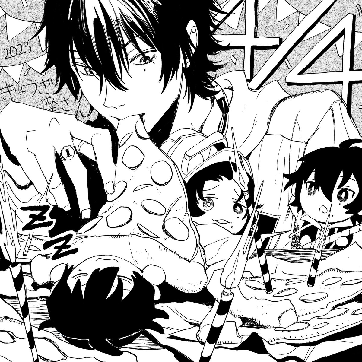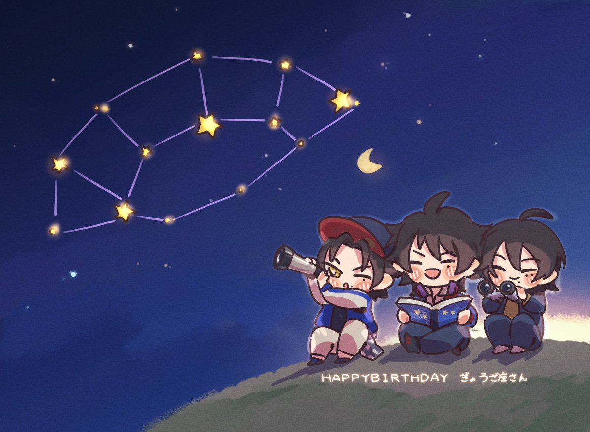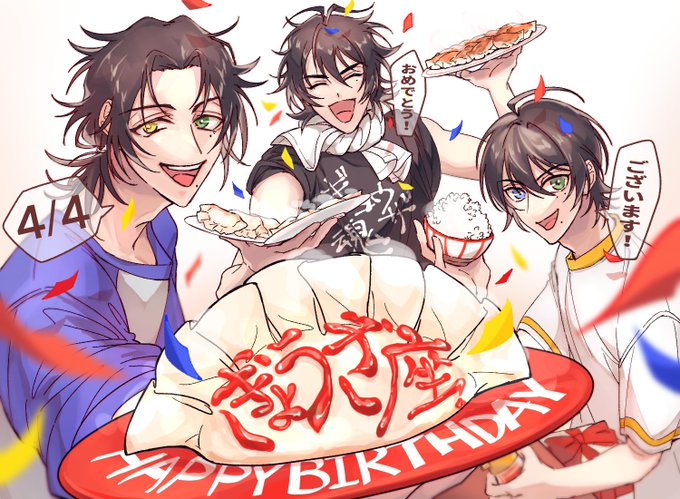 3 7 とても嬉しいことに♨️さん(@y_yynii6 )にお誕生日イラストを頂きました!!2つも!!! 特大🥟、この3人にかかれば一瞬でなくなっちゃうんだろうなぁ…。一郎の笑顔と二の腕が眩しい✨ そして夕飯のあとは三兄弟でぎょうざ座観測!絵本みたいで可愛すぎる😭 本当にありがとうございました!!! 23/04/23 00:36