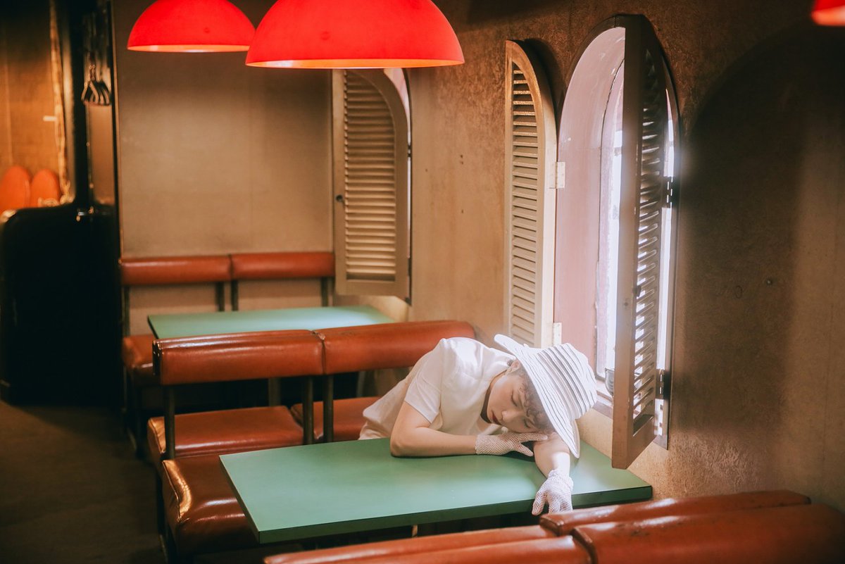 ちあきさんが撮ってくれた、休憩中何かに驚いているttnuくん #レイヤーさんはコスプレの時のオフショットを晒して下さい