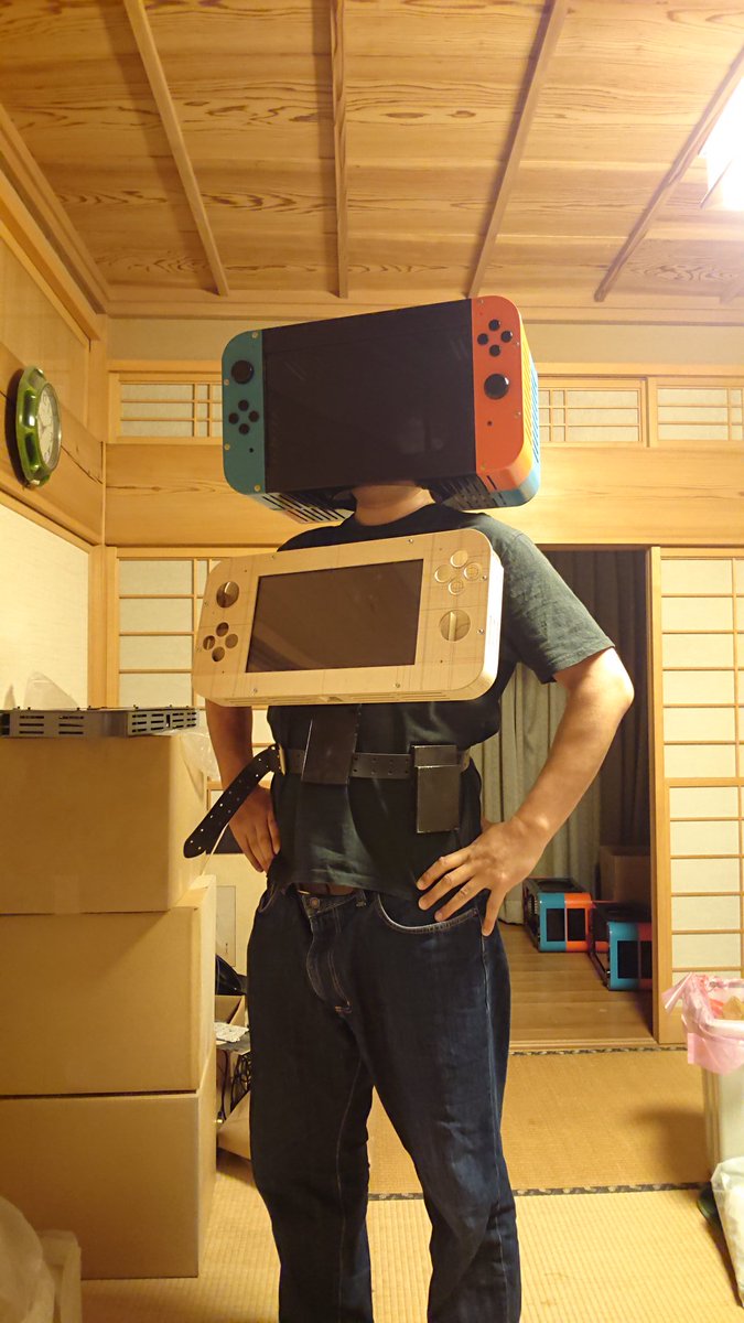 さあさあ!三体目のニンテンドースイッチマスクの完成だ! 内蔵モニターと大きな視界を確保し、実働ニンテンドースイッチと組み合わせることで、体を使ったゲームまですべてプレイできる究極ニンテンドースイッチのコスプレが完成するのだ! #ニンテンドースイッチ #コスプレ