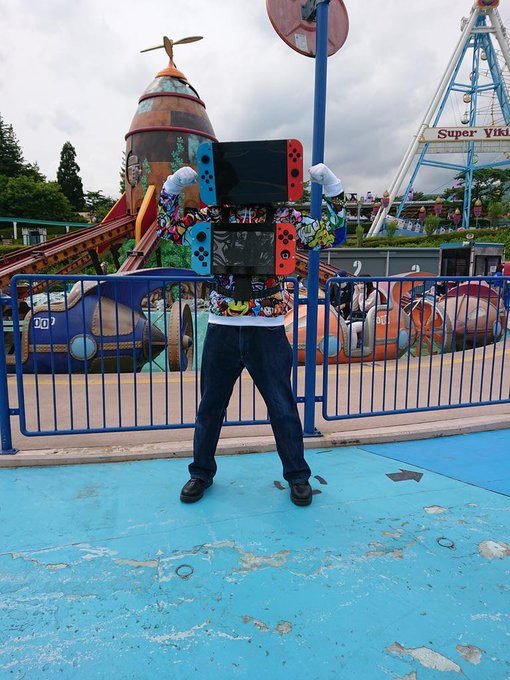 コスプレ「究極ニンテンドースイッチ」のフル装備も良いけど、通常は写真のように軽装バージョンの使用が多いだろうな。いつか東京のニンテンドーショップに行って、行列の待ち時間に巨大ニンテンドースイッチをプレイしてみんなを驚かせたいなw #ニンテンドースイッチ #コスプレ
