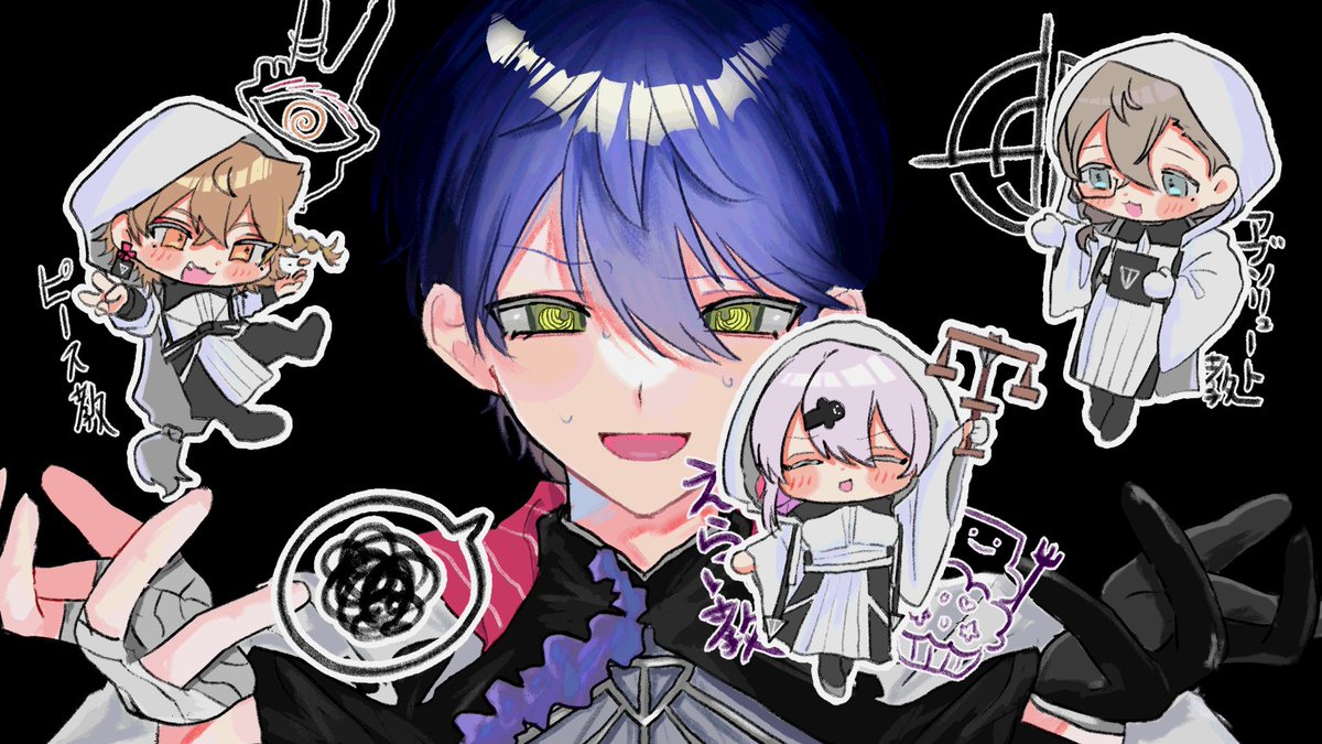 咎ノワ(+メシャ) 学パロ ⚠️線も文字も汚い #金剛力也像 #絵ガク #kuzuart #かな絵 #絵スコート #さ絵ぐさ #灰画
