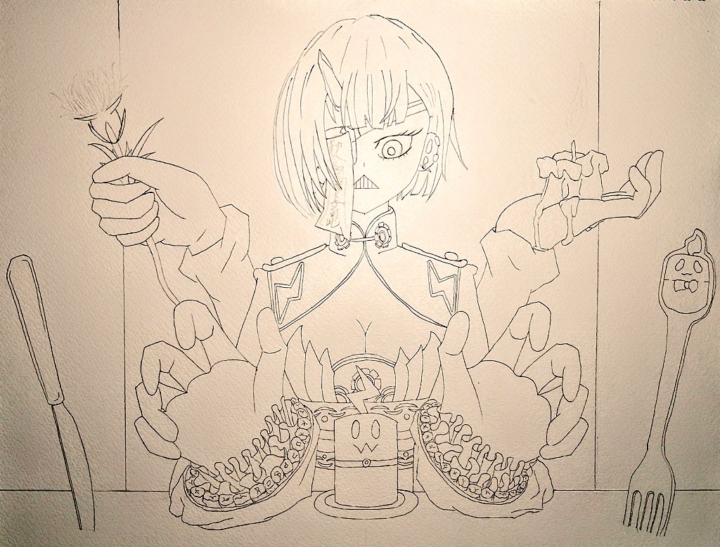 #ロボ子Art 君をくれなきゃイタズラしちゃうよ? 線画で失礼 ハッピーハロウィン!!