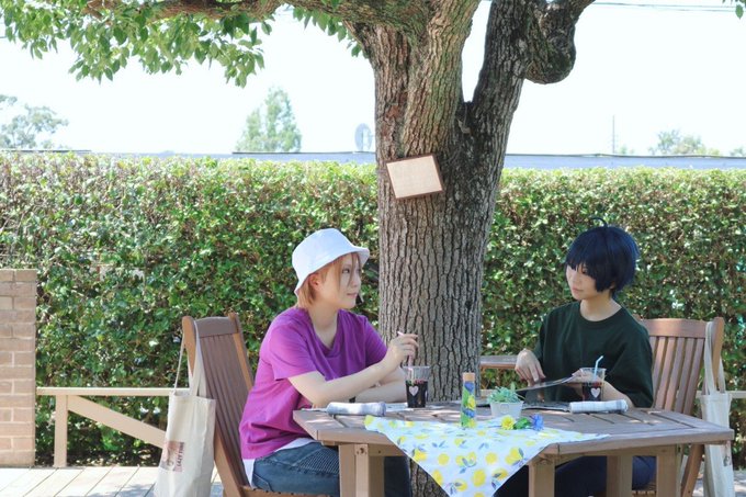 志輝さんが色々かわいい小道具揃えてくれたおかげで素敵なお写真撮れました☕️✨ おそろっぴでカフェ友マスク作ってみたのもつけてくれた…はっぴー*:ஐ(●˘͈ ᵕ˘͈)人(˘͈ᵕ ˘͈●)ஐ:* #アコスタ #アコスタ緑化センター