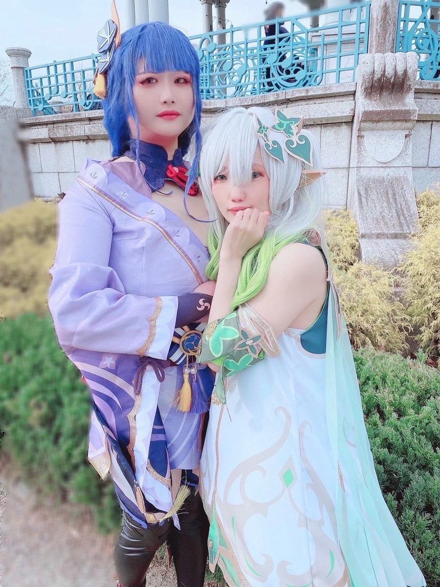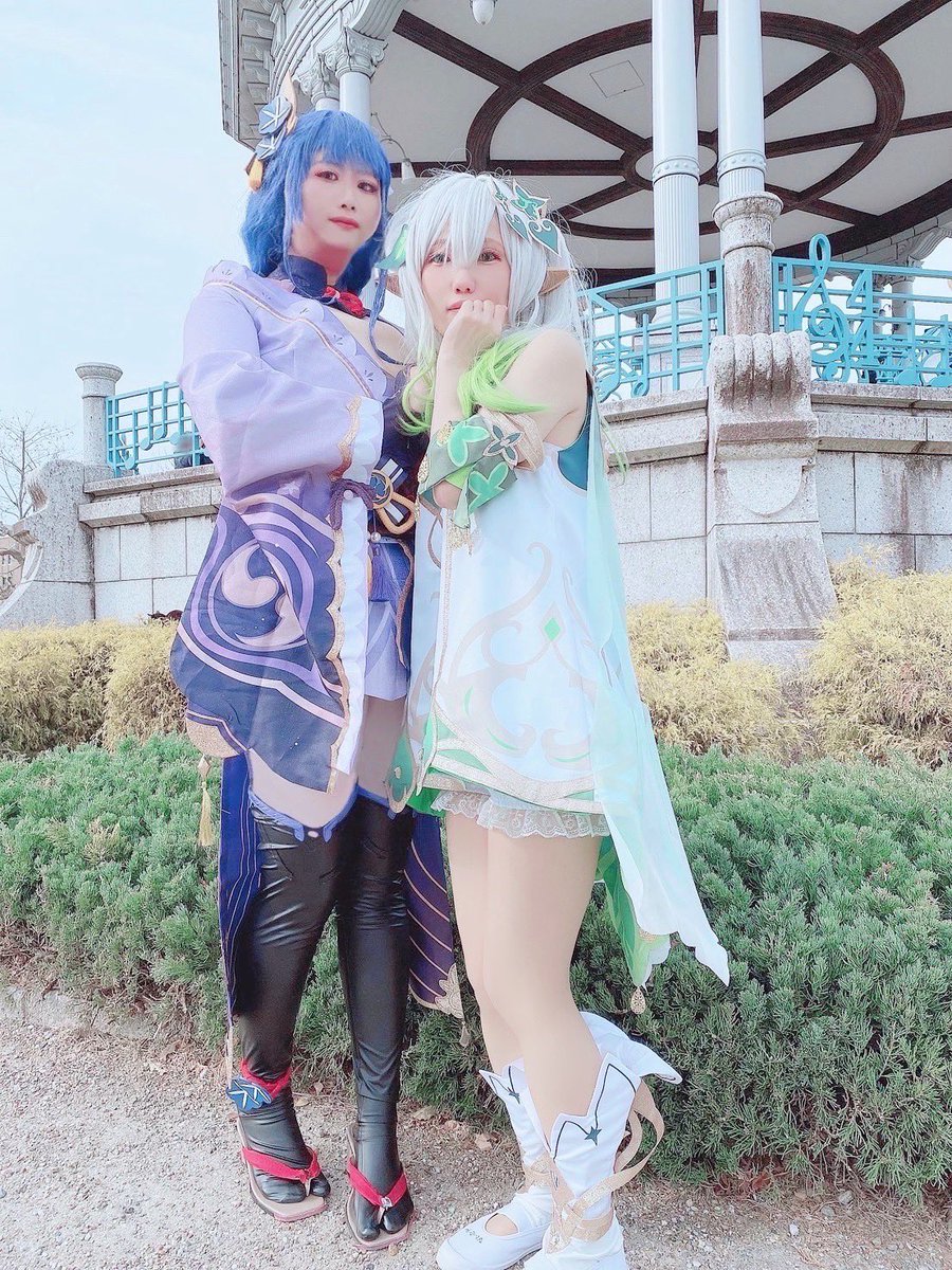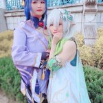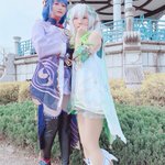 コスプレ 原神 Genshin Impact Zhongli & Hu Tao こんな絶景、詩を作るにはぴったりね! 🏮🏮🏮🏮🏮 鍾離:右近さん@u_katayama 胡桃:緋那 🏮🏮🏮🏮🏮 Photo:ゆうしろうさん @yuushirou_dc5 #鴨コス @shimogamocoseve #萬福寺 #萬福寺ランタンフェスティバル