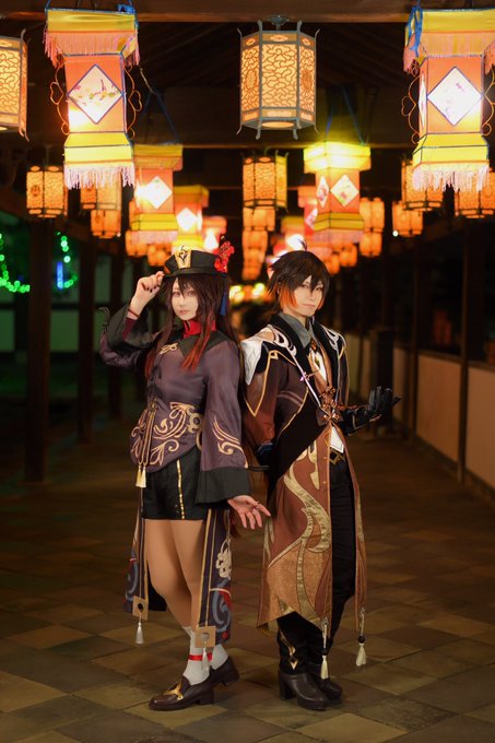 コスプレ 原神 Genshin Impact Zhongli & Hu Tao 欢迎光临 ! 🏮🏮🏮🏮🏮 鍾離:右近さん@u_katayama 胡桃:緋那 🏮🏮🏮🏮🏮 Photo:ゆうしろうさん @yuushirou_dc5 Event: #鴨コス @shimogamocoseve #萬福寺 #萬福寺ランタンフェスティバル