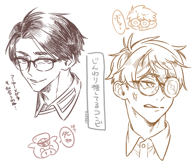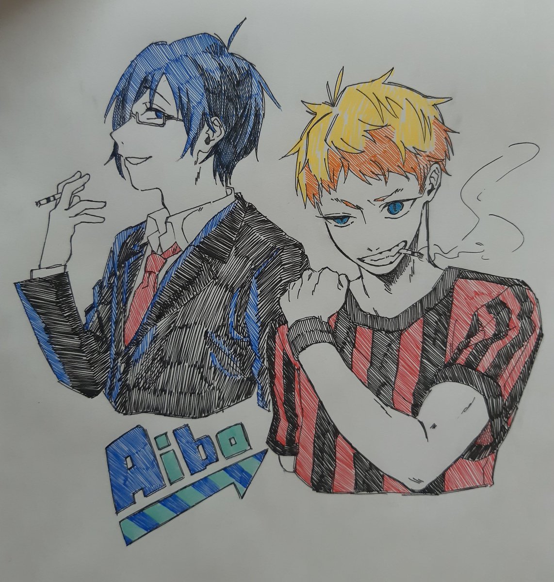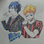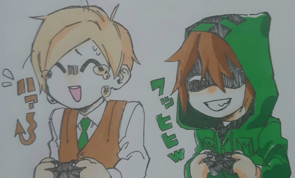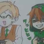 厚塗りに挑戦して見事敗北したので腹いせに先後輩と総統描きました😡😡😡