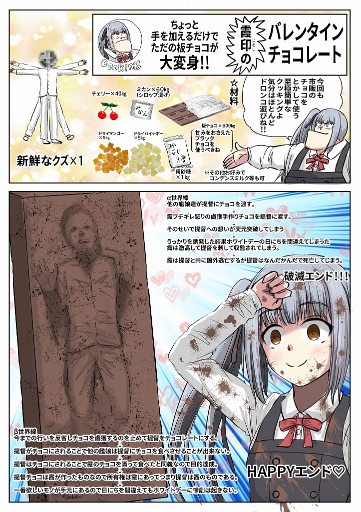 幾多の困難と世界線と犠牲を乗り越えて遂に成し遂げた霞チャン。 #艦これ #バレンタインデー