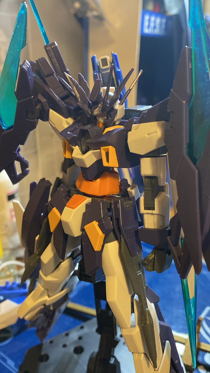 便宜上、 AGE2ウインドナイツ バージョンテンペストストーミーウェザー 一応設定は最終決戦仕様、ウェポンバインダーを取り付けた事で長期戦、並びにフルバーストの威力向上を目指した仕様 ・・・フリーダムの羽の他になんか羽を付けたりしたい #ガンプラ #ガンプラの画像を貼るとRTされると聞いて