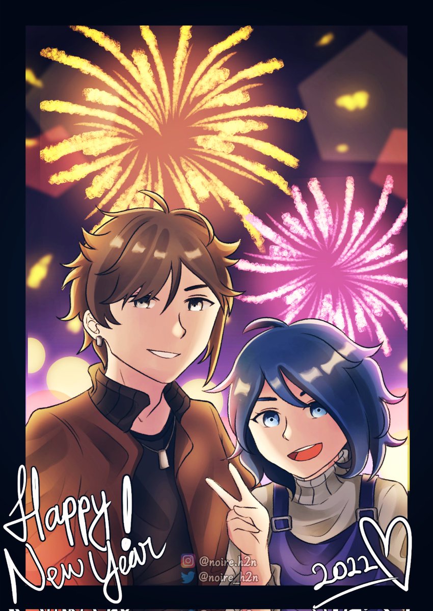 Happy New Year 2022, ft. my oc, Kyo and Seiya! 🎉🎉🎉 thank you for being my moots 😭😭💞💞 Wish you a wonderful year 💖💖💖 #artistsontwitter #artidn #NewYear2022 #zonakaryaid