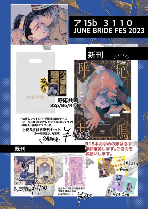6/25 JBF2023 少尉殿につきっきり ア15b 3110 お品書き 支部→ pixiv.net/artworks/10888… 🐯→ ec.toranoana.jp/joshi_r/ec/ite… 取置→ triokini.com/circle/item/14… 当日はどうぞよろしくお願いします