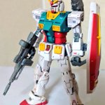 #エンゲージゼロ 。 原作は知りませんがおもしろいキットです。 形式番号が「RX-78 MS00Z」で連邦とジオン両方が併用されているのでジオンが開発したガンダムという脳内設定で塗装しました。 額のカメラはモノアイにしてます。 装備は連邦カラーです。 #ガンプラ #FTBC2023 #オールガンダム