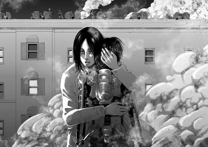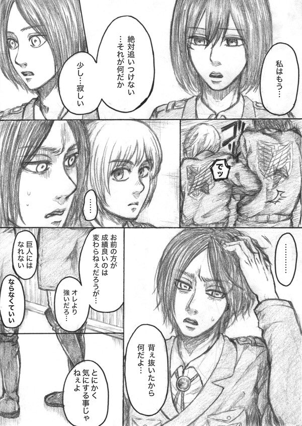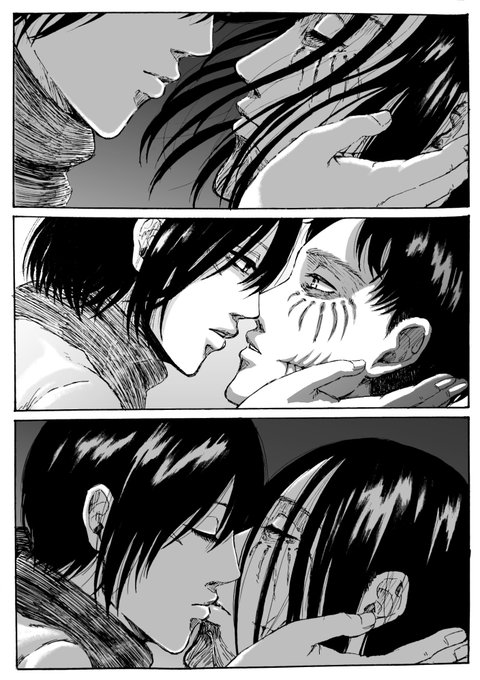 【121話】 エレミカエレ(?)というこの状況が我らの妄想ではなく原作の公式シチュエーションという事に脳汁が爆発して描いた。 進撃無料キャンペーンで29巻まで追い付いた同志はマガポケで最新話の121話まで読んでくれよな!