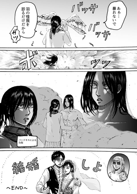 363 1519 【121話】 エレミカエレ(?)というこの状況が我らの妄想ではなく原作の公式シチュエーションという事に脳汁が爆発して描いた。 進撃無料キャンペーンで29巻まで追い付いた同志はマガポケで最新話の121話まで読んでくれよな! 19/09/18 06:54
