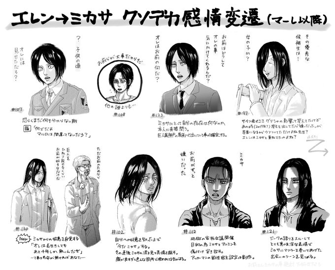 254 1025 130話では「ジークによってミカサの恋心がエレン本人にバラされていた」など エレミカ案件が後から発覚しまくって脳が無理なので時系列にして喚き散らしました。 20/08/03 10:19