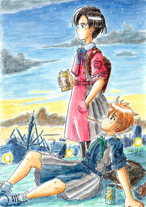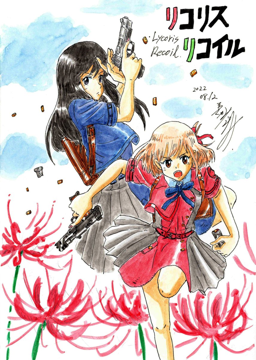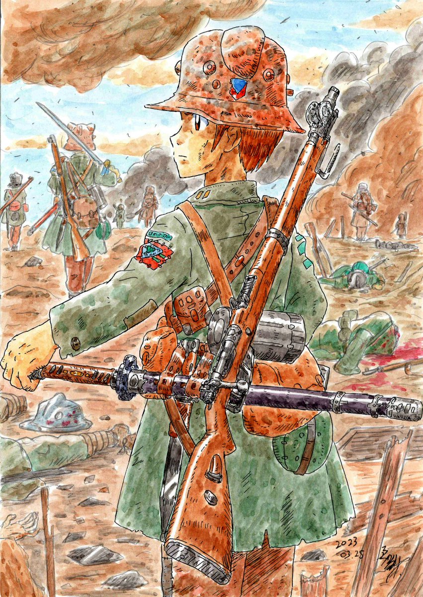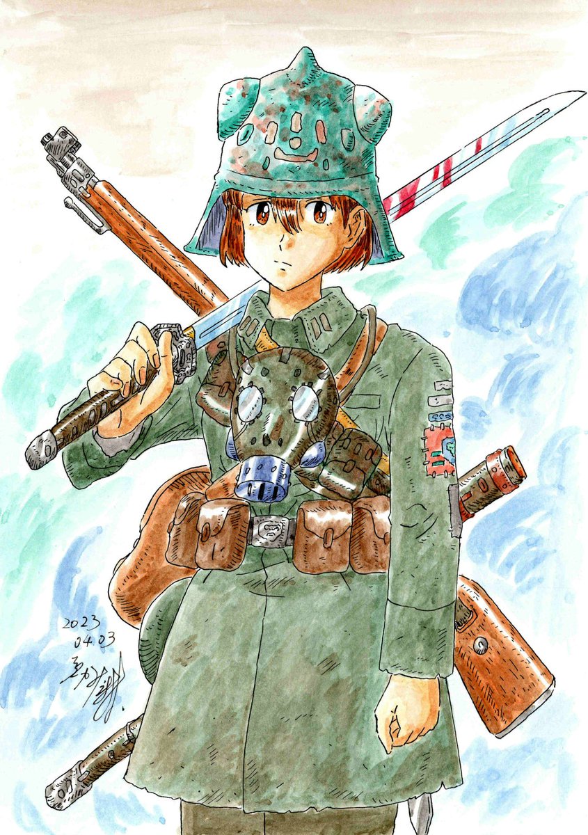 #女の子に銃持たせるの好きゾ 多分発端は漫画版ナウシカとアニメNOIR(ノワール)の影響。 もはや銃というか武装させるのが好き。 持ってるのは刀だけどライフル背負ってるから過去絵再掲。 #イラスト #絵描き