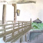 若葉して点茶畏き奈良の僧 #俳句 #haiku #奈良 #法隆寺 #スケッチ #水彩画 #淡彩画