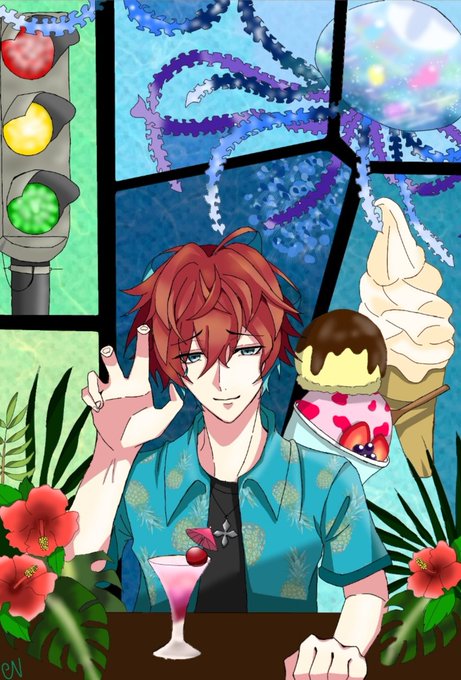 ~旅館~ 👔「いい湯だったな~」 🍸「ほいっ」 👔「冷たっ!!」 🍸「ふふ… 笑笑w」 👔「お前なー!!」 💉「仲良いですね✨」 #ヒプマイ #イラスト