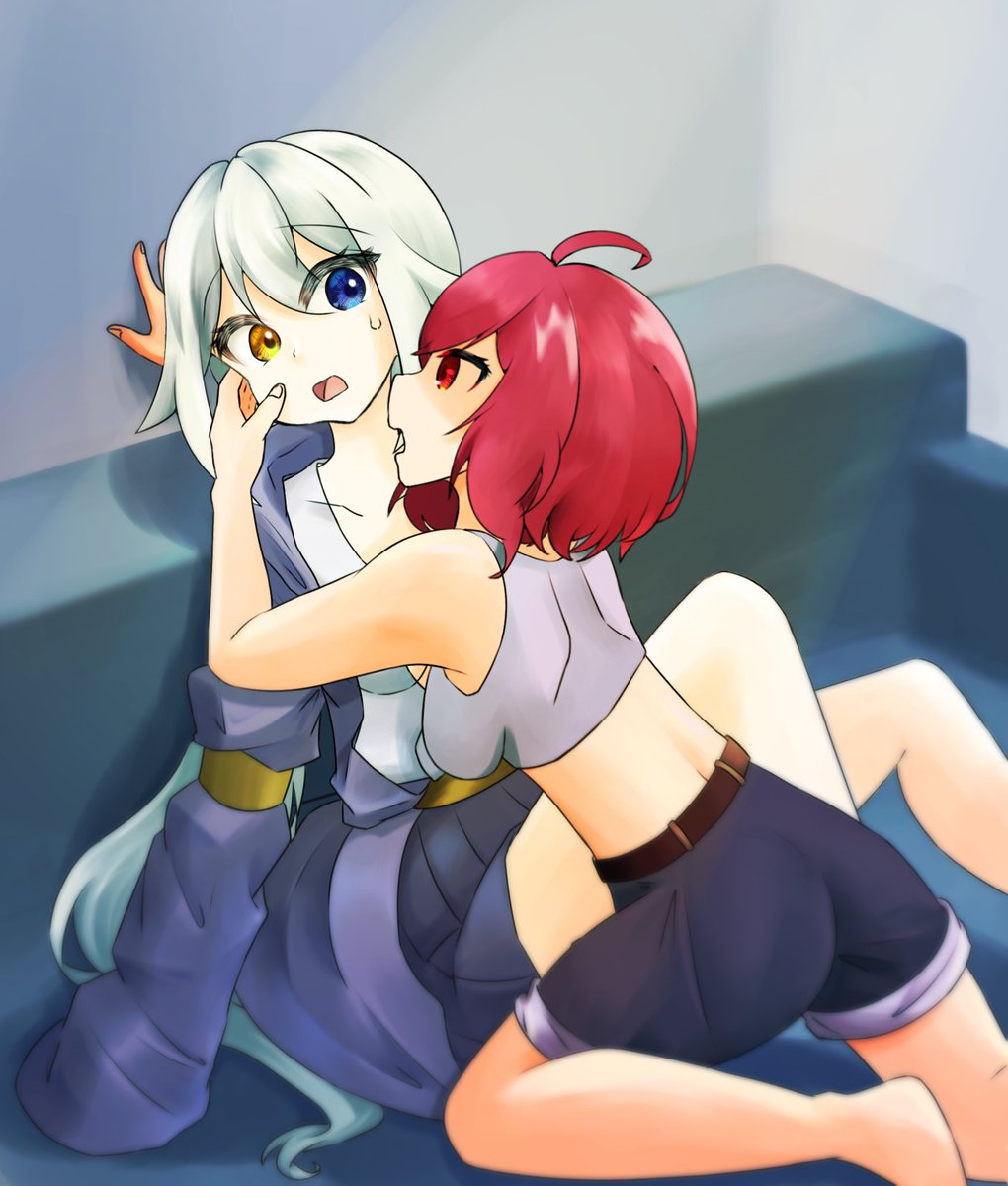 「絶対噛むなよ…」 「うんうん…(ガブっ)」 #お絵描き好きさんと繋がりたい #創作百合