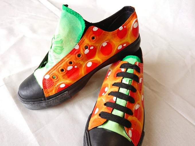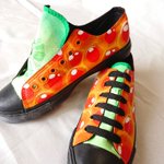 ビタミンカステーラフルセット🐄 パーカーは遠目でもわかるように、リボンは細かく描き込んであります🥰 #ビタミンカステーラ #高橋製菓 #北海道 #旭川 #ペイントスニーカー #手描き twitter.com/RR_SION/status…
